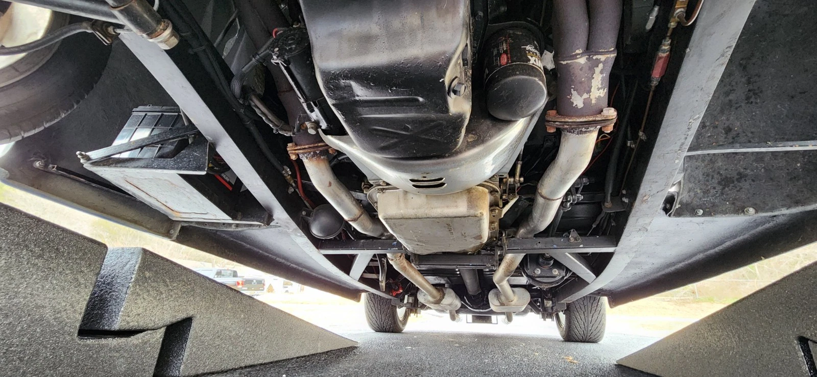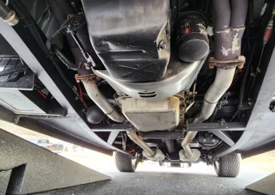Owner indicates the 200R4 transmission has been rebuilt. Uses a column shift on a tilt steering wheel. Transmission cooler mounted on the right-hand side of the frame.