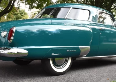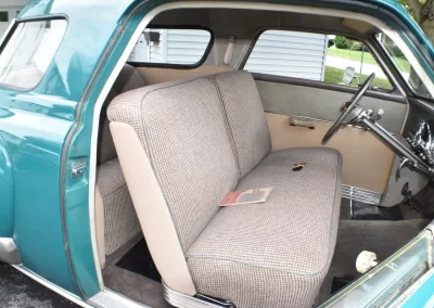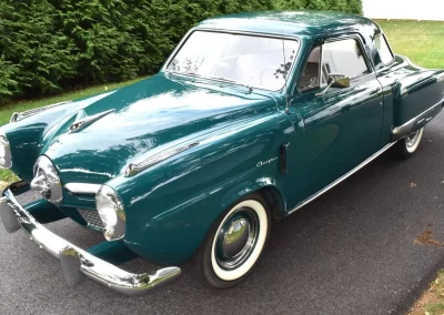 Beautifully restored 1950 Studebaker Champion 2-door sedan in its original color of Aqua Green and powered by the matching 170 cu. in. I-6 pumping out 85 horsepower and backed by a three-speed column shift manual transmission. The Champion has also been converted to a 12-volt charging system.