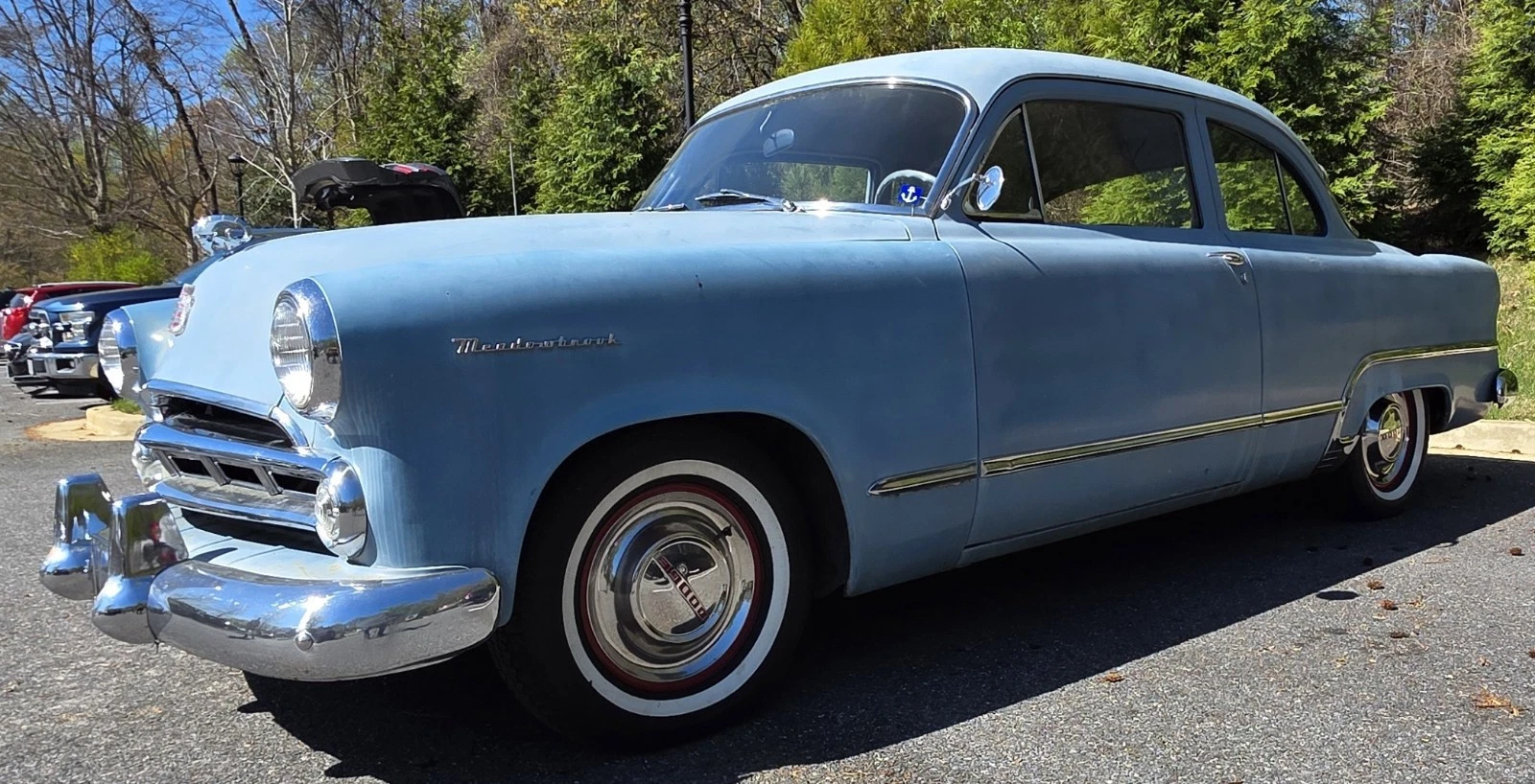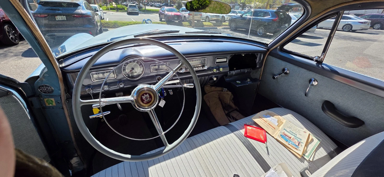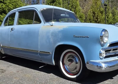 1953 Dodge Meadowbrook 2-door sedan in its original Arabian blue with a gray interior, and powered by the optional 241 cu. in. Red Ram Hemi boasting 140 horsepower and backed by a 3-speed manual transmission with overdrive. The car is being sold off as part of an estate, so the history is not complete. The mileage shows 24,500 (TMU).