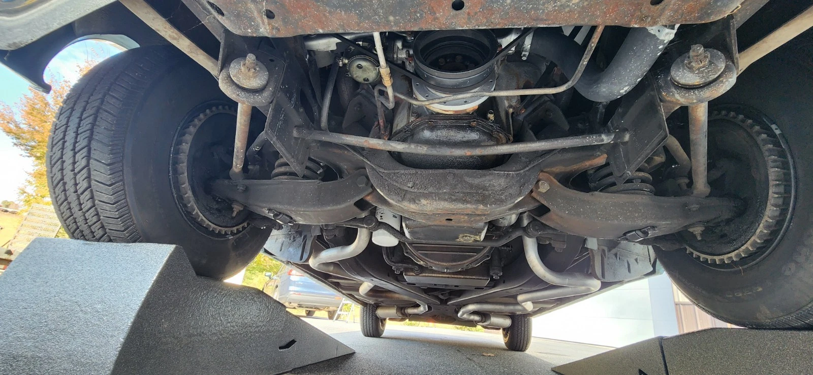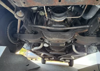 The 401 cu in V8 does not appear to burn any oil and there are no apparent leaks. The 2-speed transmission shifts smoothly and does not slip. The exhaust system appears to be new, but due to the car not being driven much, the rear resonator has developed some rust, see photos.