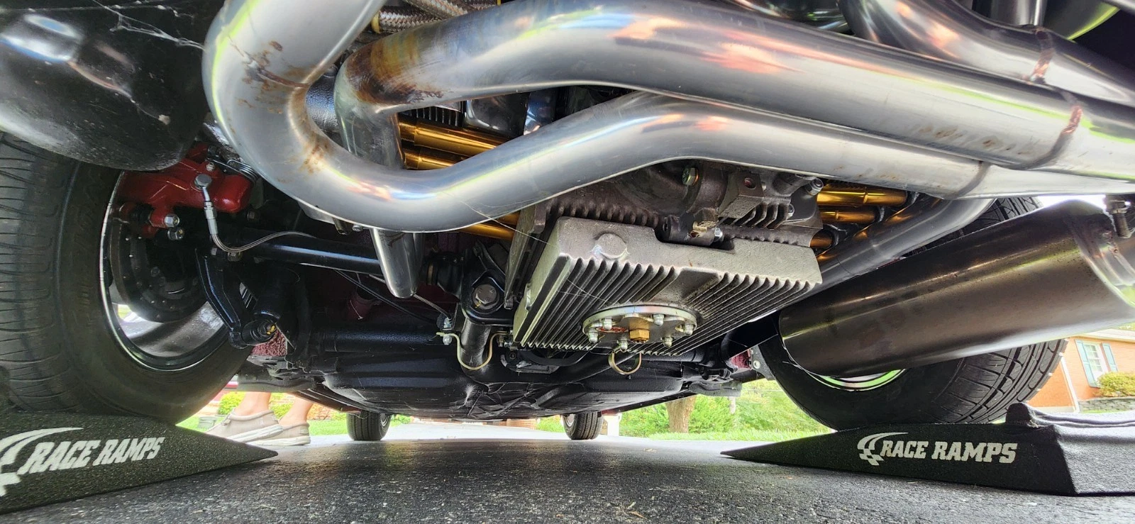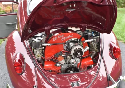 New 78.8mm x 90.5mm block, 78.8mm Volks racer forged crank, 90mm x 82mm forged pistons, 8mm chromoly head studs, C-45 cam, 5.394” I-beam rods, Pro Street cylinder heads, Chromoly 12v light flywheel, 1.1 HD rocker arm assembly, billet oil drain plate, 1.5 qt oil sump system with remote filter, Stainless steel valve covers, Pertronix Flamethrower ignition, doghouse oil cooler, 60 AMP Generic Alternator, serpentine alternator and crank drive system, dual 44mm Weber carburetors, and A1 1.625” ‘Sidewinder’ Ceramic coated exhaust system.