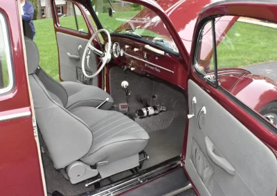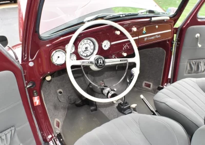 2-stage urethane ‘Ruby’ Red paint on an all-steel body. No patch panels or bodywork, new running boards, new floors, new glass, new soft top for the sunroof, weather stripping, gaskets, fuel tank w/sending unit, head & taillights, chrome bumpers.