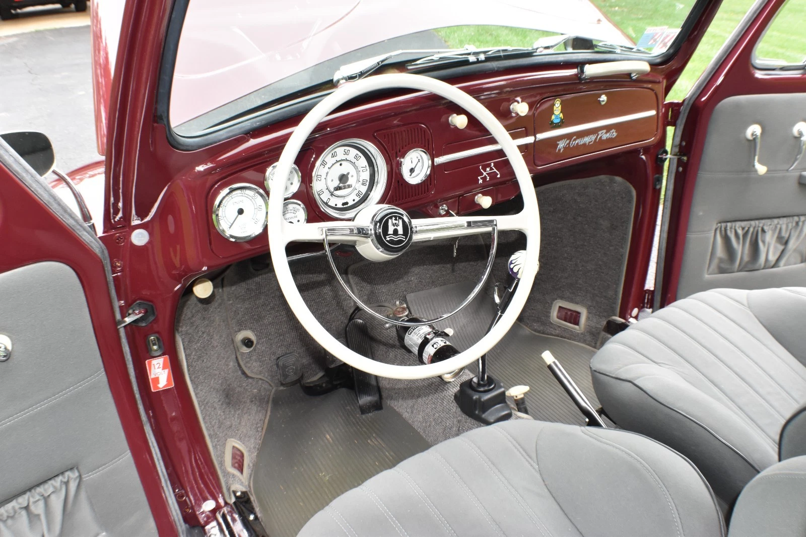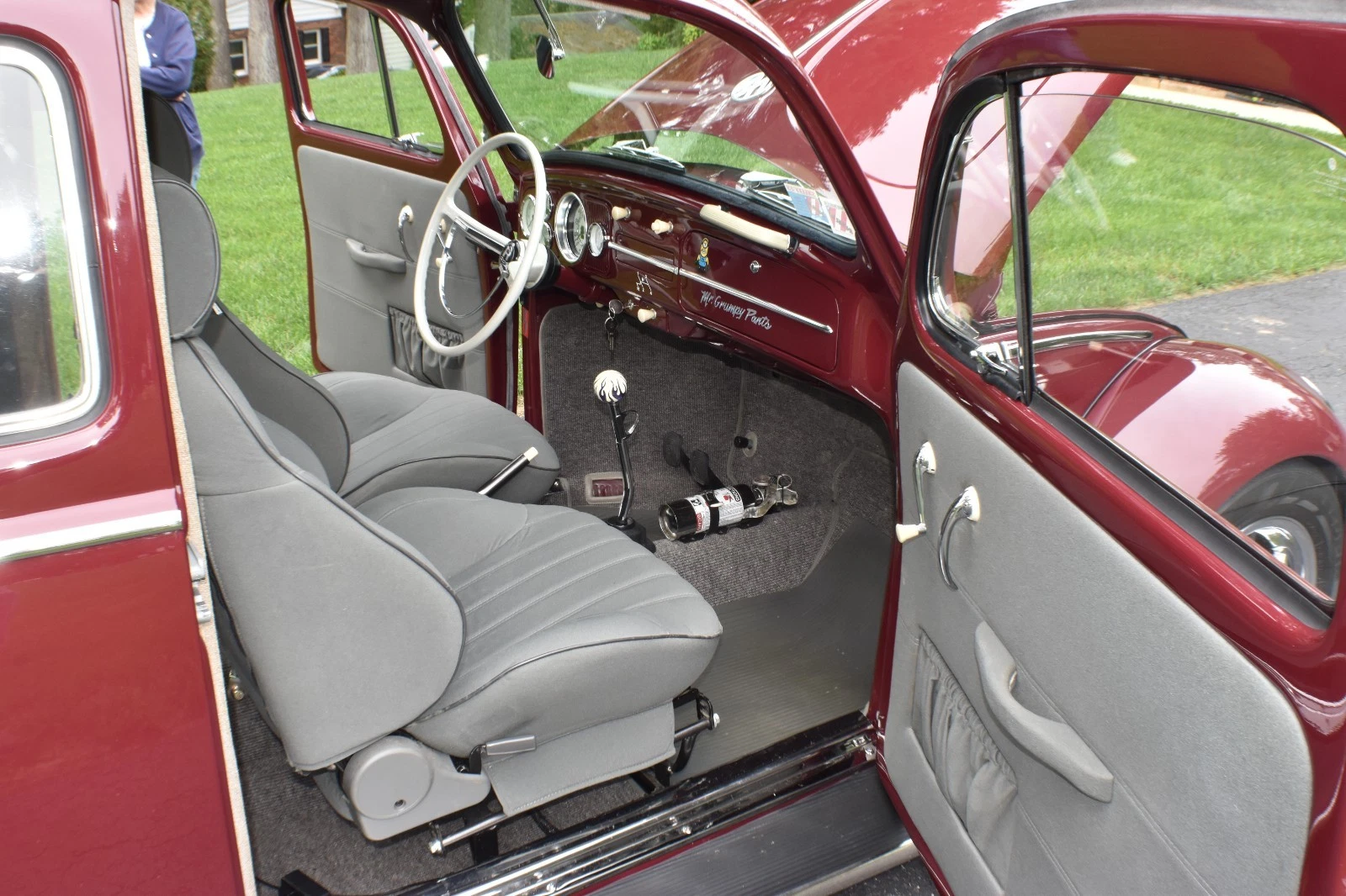 Close ratio steering box, Wilwood 4-wheel disc brakes, front end was narrowed 4” with adjustable torsion bars. 5-lug chrome wheels with Bridgestone 175/65R/15 front and 195/60R/15 rear.