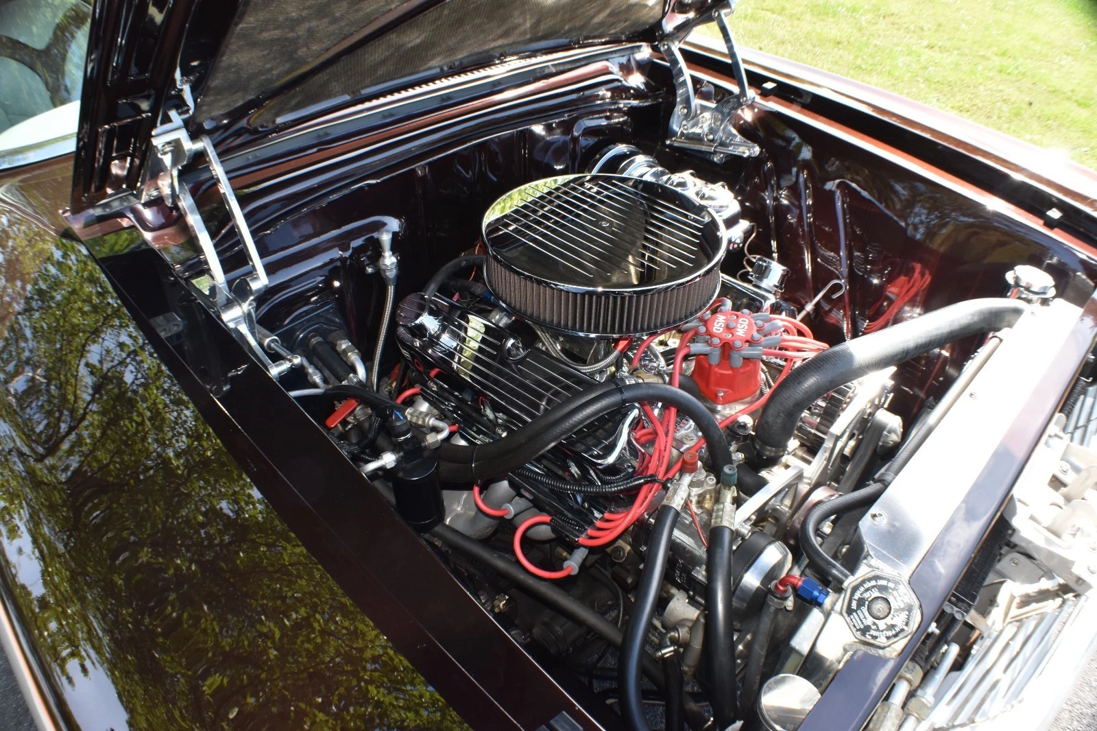 Chassis: Rod & Custom power rack & pinion steering front-end with tubular ‘A’-arms and Aldan coil over shocks. R&C 4-link rear suspension with Aldan coil over shocks, 8” Ford differential with 3.73:1 posi-traction gears. 4-wheel power disc brakes (10” front & 9” rear). Billet Specialties Intro wheels measuring 17” front and 18” rear with Goodyear Eagle F1 235/40R17 and 245/45R18.