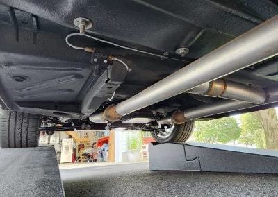 There are many custom features which include cut & narrowed molded-in steel bumpers, cut & molded bedrails, filled tailgate, front fenders molded into the rocker panels, shaved door handles, drip rails, and wipers. One-piece driver and passenger windows.