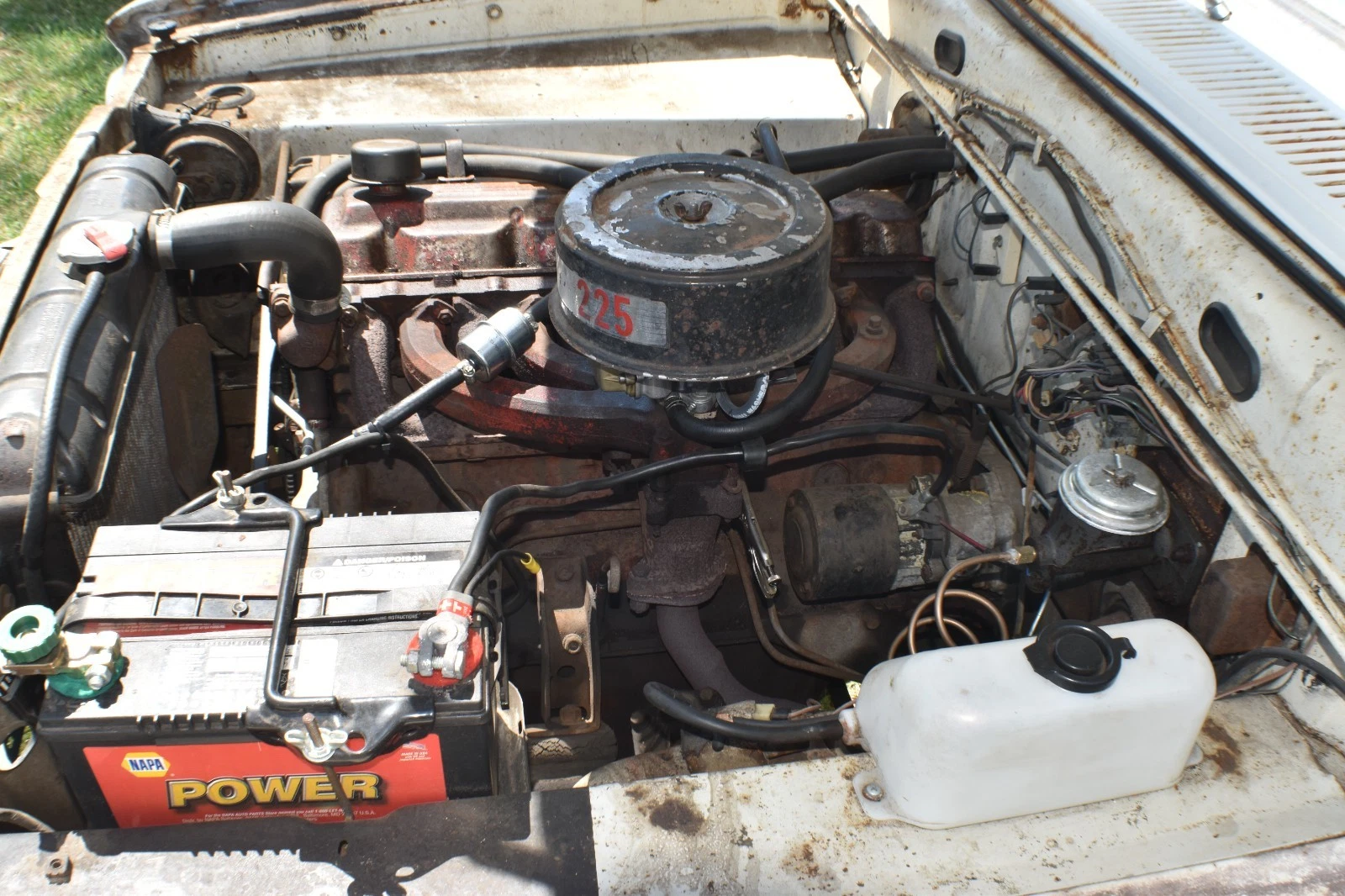 The exterior chrome is in poor to fair condition. The top appears to have been replaced at some time and looks in good shape. It is manual and not power.