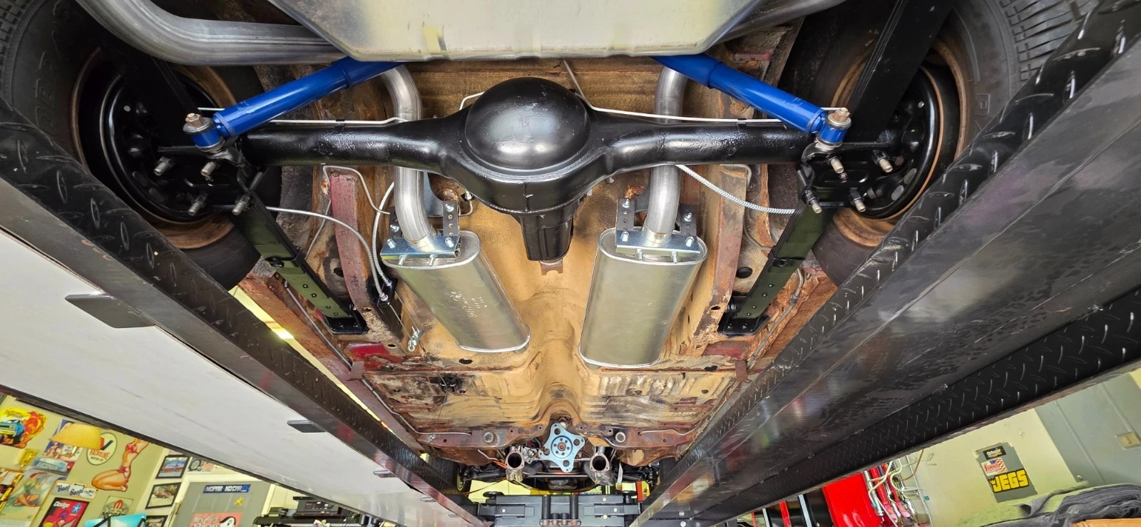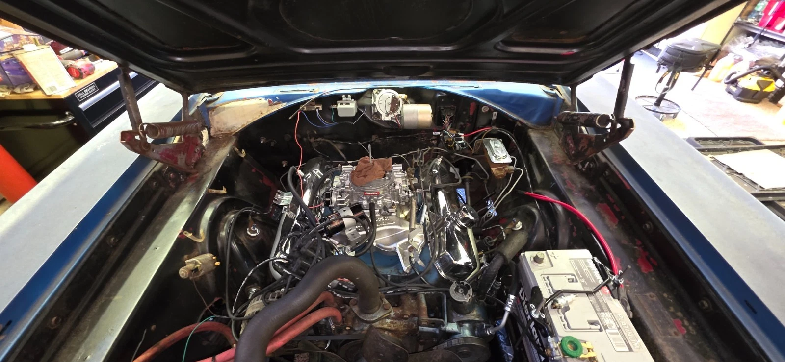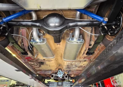 New front-end parts, brake system, rear springs, rebuilt 8.75 rear differential. Stock power steering looks original. New 15” Magnum 500 wheels with new Cooper Cobra 205/75R/15 radial tires
