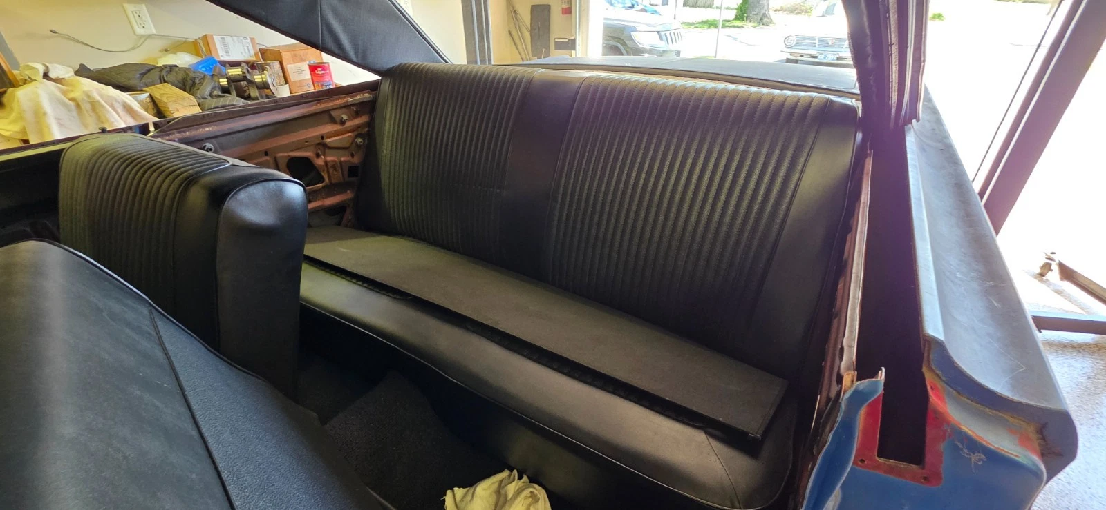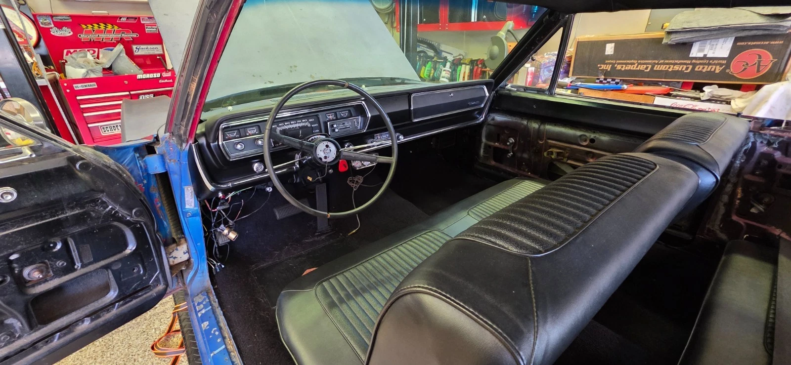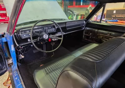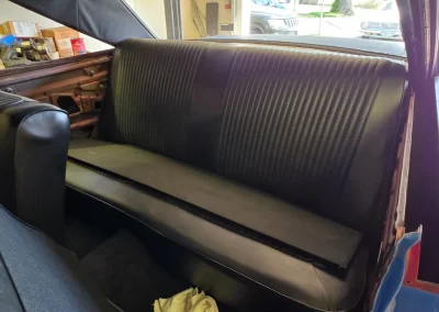 Refinished dashboard, including factory gauges, some new wiring, new upholstery, arm rests, and door panels. Door handles and window cranks are original.