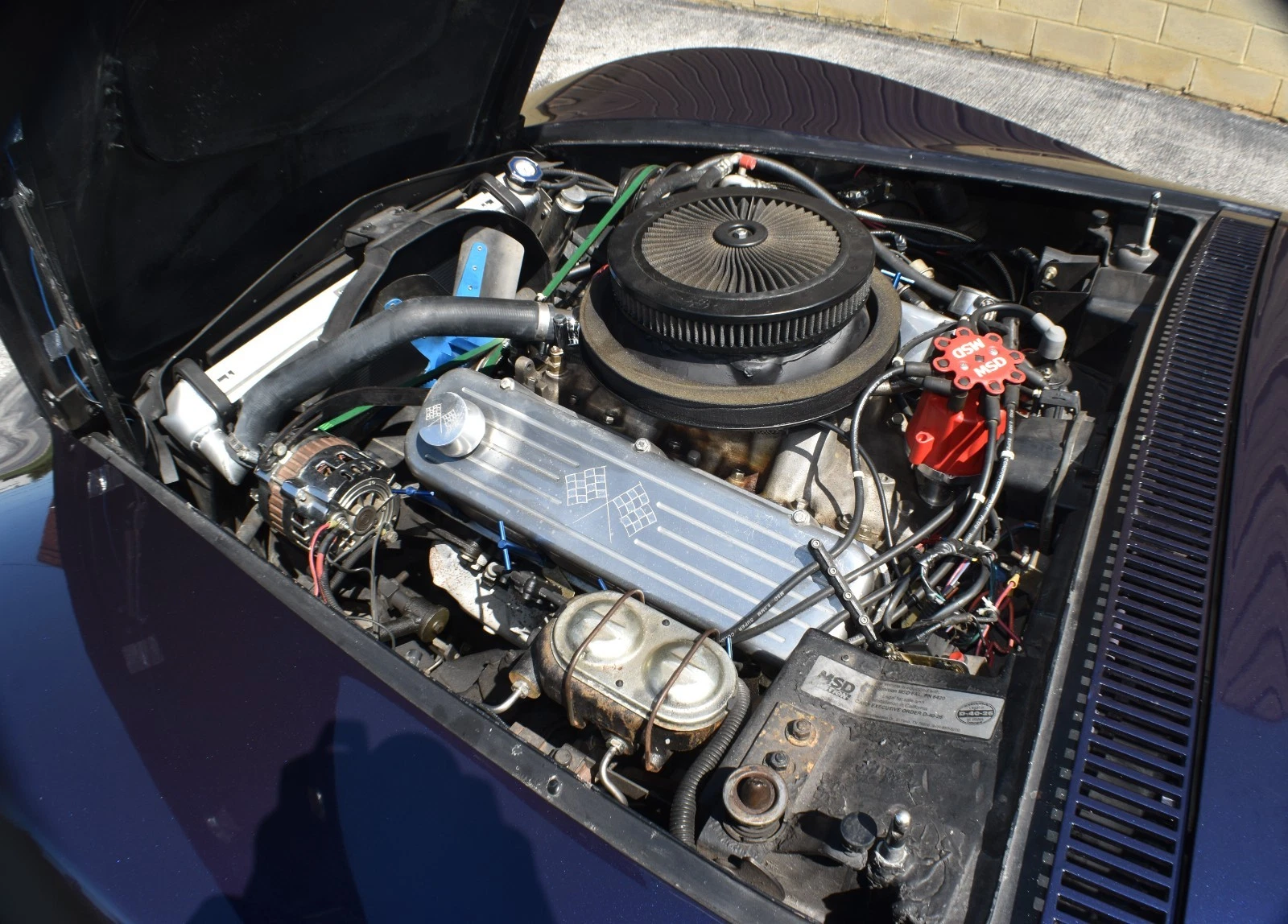 454 cu in HO motor with hydraulic roller cam and roller rocker arms.