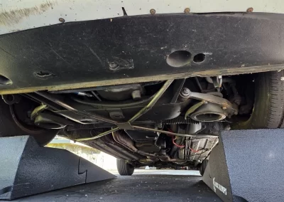 The body is in good condition with no accidents reported on the Carfax and having had one repaint done in 2012 in the original white. Please view all photos carefully. Exterior glass, top, and chrome look good. Power top functions normally and the power windows operate smoothly.