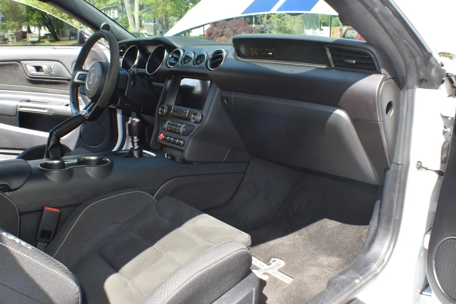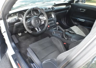 Options include the Electronics package (67T), which adds the SYNC 3 infotainment with an 8” screen, 9-speaker stereo system, and dual zone climate-control. Additionally, this GT350 has a 3.73:1 rear axle ratio, 15 ½” 6-piston Brembo front brakes and 15” 4-piston Brembo rear brakes, oil and transaxle cooler, launch control/line lock, and dual zone active exhaust system.