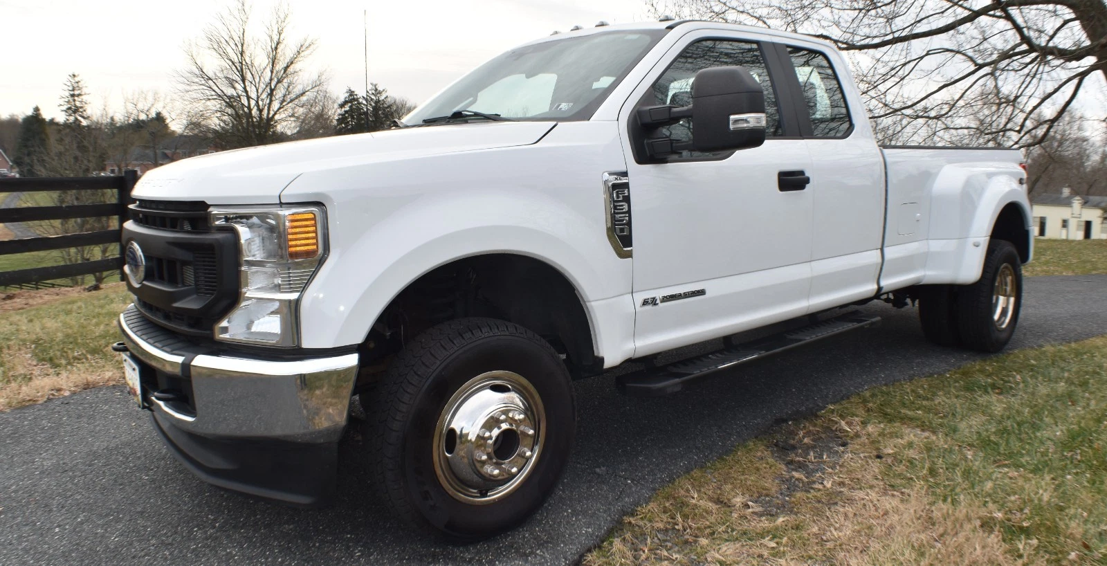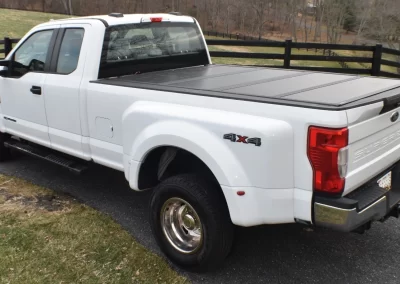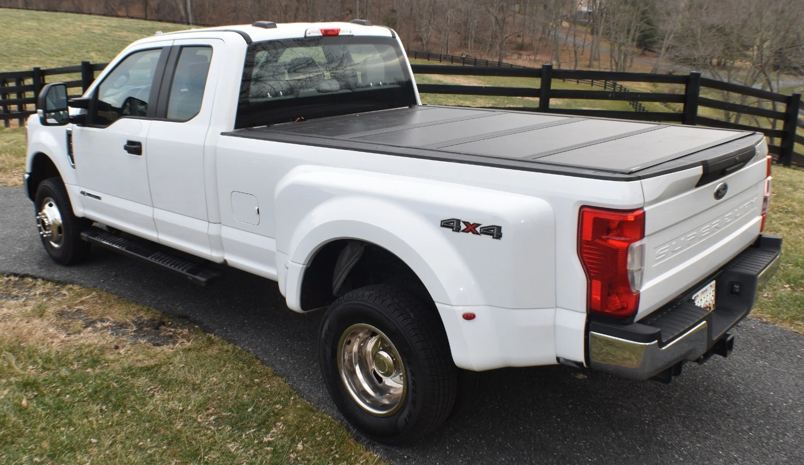 Well maintained and low mileage (30,000) 2022 Ford F350 Super Duty Supercab 4×4 with an 8’ bed, powered by the optional 6.7 L Power Stroke V8 diesel engine and backed by a 10-speed automatic transmission. This SD F350 is loaded including a BW 5th wheel turnover ball in the bed and an aftermarket fold up tonneau cover.